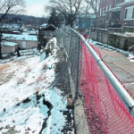 A walk up McKinley Avenue quickly reveals buckled pavement and a visible bend in the curbing along the wall, and snow fencing has been erected in areas where a chain-link fence has bent or broken.