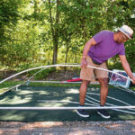 Andy Smith of Lititz prepares his vendor booth for showing and selling his watercolor paintings, on Tuesday, July 2, 2024 at Twin Lakes Park. Smith, 71, a full-time artist, will be selling his artwork for the second year at the 50th annual Westmoreland Arts and Heritage Festival while with his wife, Linda Smith, who helps with his art business.