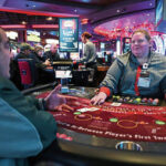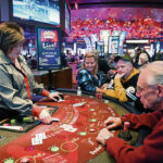 Games dealer Stacey Havrilla chats with customer Wayne Aiken of Altoona as he plays blackjack at Live Casino Pittsburgh at Westmoreland Mall in Hempfield on Thursday.