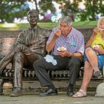 Valjean Null of Youngwood and her husband, Bill, found a shady spot on a bench, right next to a statue of Fred Rogers, as they enjoyed a midday treat.