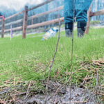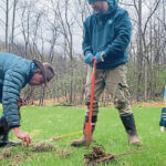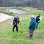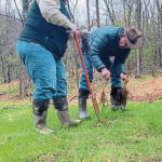 With the construction done, the area is slowly being reclaimed by nature as grass seed begins to take root, and yellow trout lily saplings are granted some protection from the local deer by growth netting. Volunteers from the association, the Westmoreland Conservancy, the DEP and nonprofit Green Forest Works were avoiding soft spots in the ground and looking for red stakes, marking the places where chestnut trees will be planted and eventually thinned.