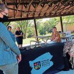 The organization received the bird after it was struck by a vehicle. Since one of its wings had to be amputated, it could not be returned to the wild and has instead become an ambassador animal for the group.