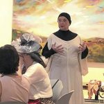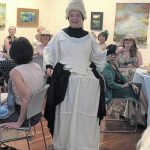 Her program, titled “Silhouettes: A One-Woman Fashion Show,” covered what she calls historical costuming from the biblical fig leaf to the small fig-leaf apron popular in the later 1800s.