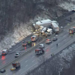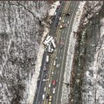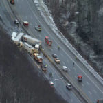 An aerial view courtesy of WPXI-TV of a fatal accident on the Pennsylvania Turnpike in Mt. Pleasant Township on Sunday, Jan. 5, 2020.