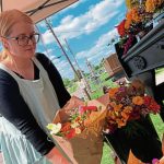 A Pretty Flower owner Danielle Rafferty of Greensburg arranges a bouquet at the Pennsylvania Arts & Crafts Labor Day Festival, which runs through Monday at the Westmoreland Fairgrounds in Mt. Pleasant Township.
