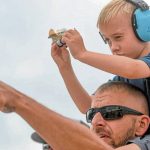 The early rain left two young members of the Smith family — Rosalie, 2, and Joanna, 5 — with wet hair, but that didn’t bother them. The girls played with small wooden airplanes while waiting for the show to begin with their mother, Amy, and father, Alex. The Smiths were impressed at the number of ground displays in addition to the action in the air.