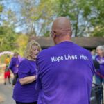 Prior to the walk, a Promise Garden ceremony took place. The colors of the Promise Garden flowers represent walkers’ personal connection to Alzheimer’s and embody their diverse motivations: Purple means the walker has lost someone to Alzheimer’s or other dementia; orange indicates the walker supports the cause and the Association’s vision of a world without Alzheimer’s and all other dementia; yellow stands for the walker’s support or care for someone living with Alzheimer’s or another dementia; and blue is for those living with Alzheimer’s or another dementia.
