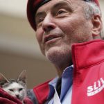 Sliwa brought one of the cats with him Tuesday to his Manhattan polling place but was told the animal had to stay outside.