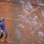 Spain’s Carlos Alcaraz serves during a round of sixteen match against Russia’s Karen Khachanov at the Italian Open tennis tournament in Rome, Tuesday.