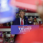 Republican presidential nominee former President Donald Trump speaks at a campaign rally at Williams Arena at Mignes Coliseum, Monday, in Greenville, N.C.
