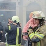 Rescuers evacuate children from the kindergarten hit by Russian drone strike, amid Russia’s attack on Ukraine, in Kharkiv, Ukraine, on Wednesday.