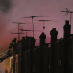One cellphone video taken by a witness moments after the crash showed a chaotic scene with debris scattered across the intersection. A wall of orange glowed just beyond as a plume of black smoke quickly rose into the sky and sirens blared.