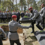 HALBE, Germany — In a forest near Berlin, the remains of 107 fallen Wehrmacht soldiers were ceremoniously interred last week. High school students placed white gerbera daisies on small black coffins, and German soldiers lowered them respectfully into a large, freshly dug grave as a military band played a solemn tune.