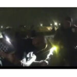 “Put him in handcuffs,” an officer is later heard saying. The stadium lights are cut off shortly before the band finishes.