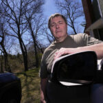 “Initially, we just noticed that all the mirrors had been adjusted. It looked like maybe there’s a child in the neighborhood that was going around pushing the mirrors down,” he said. But then his sister-in-law spotted the roughly 21-inch (53-centimeter) tall woodpecker on Favaloro’s truck, pecking at the side mirror.