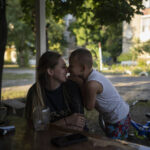 Kanivets, Pototska’s friend, sent her 12-year-old son, Yaroslav, to a 10-day summer camp in western Ukraine “to give him a break” from the shelling. The war forced him to grow up very quickly but “he has friends here, it’s his home, so I think its better to stay,” she said. “He’s not scared.”