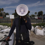 LOS ANGELES — At a Home Depot parking lot, a man patrols on a bicycle for federal immigration agents, toting a megaphone on his hip so he can blast a warning to day laborers waiting to land a landscaping or construction job.
