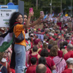 “I don’t want to be complicit in these horrendous crimes happening there and I want to speak out,” protester Marin Koning told The Associated Press.