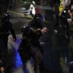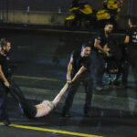 Videos showed police officers dragging protesters by the hair and neck, beating people until they bled and violently pushing them back with batons. At least 10 officers were assaulted and injured, police said.
