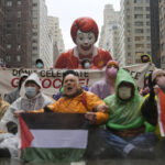 NEW YORK — The Macy’s Thanksgiving Day Parade was drenched in rain Thursday and briefly disrupted by Pro-Palestinian demonstrators.