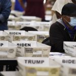 As they worked, the room was quiet aside from the shuffling of papers and auditors saying, “Trump” or “Biden.”