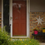 Multiple bullet holes could be seen in the front door of Hoffman’s home.