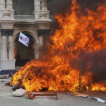 The presidential palace, the prime minister’s official residence, and a building that houses the offices of the prime minster and several ministries were all torched. Thick smoke rose from the prime minister’s office building.