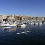 A man paddles a canoe in Marseille’s Vieux Port, southern France, Friday, Feb. 3.