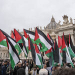 Vatican officials said about 70,000 people filled St. Peter’s Square for Francis’ noonday speech and blessing. They included many people flying Palestinian flags, as well as some Ukrainian ones.