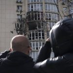 Drone wreckage struck a two-story apartment building in Kyiv’s western Svyatoshynskyi district, while other debris struck a car parked nearby, setting it on fire, Kyiv Mayor Vitali Klitschko said in a Telegram post.