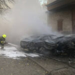 One person was injured after the roof of a five-story residential building caught fire in Kyiv’s historic center, according to Popko.