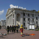 The square in front of the theater building had been bustling with life, with people returning from church after celebrating the Apple Feast of the Savior religious holiday, baskets of consecrated apples in hand, Ukraine’s Interior Minister Ihor Klymenko said. Following the strike, debris from the theater roof littered the square, along with shattered glass from the windows of nearby cars and restaurants.