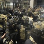 After Yoon’s declaration, troops carrying rifles and police officers were quickly deployed at parliament to ban the entrance of people, as protesters crowded outside the parliamentary compound. An Associated Press photographer saw at least three helicopters, likely from the military, that landed inside the Assembly grounds, while two or three helicopters circled above the site.