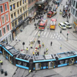 There were about 20 people on the commuter train when it derailed off the tracks at an intersection on Storgata, one of the Norwegian capital’s main thoroughfares.