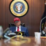 But the president isn’t always sitting still. At points, Trump was roaming around the room, standing behind his top aide Wiles as Caine appeared to speak. Some photos show Cabinet members sitting still, intently watching something, while others show a relative flurry of activities — the joint chiefs chairman pointing animatedly, Hegseth conferring with another official.
