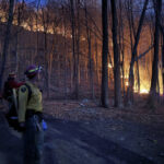 The wildfire had burned 7 1/2 square miles (19.4 square kilometers) across the two states as of Friday and was burning primarily in New York’s Sterling Forest State Park, where the visitor center, the lakefront area at Greenwood Lake and a historic furnace area remained open. Woodland activities including hunting were halted, Wernick said.