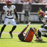 Evan McPherson’s 35-yard field goal off the right hashmark with 2:48 remaining in the third quarter put the Bengals up 17-16. It was set up after Jordan Battle intercepted Flacco’s pass at the Browns 36.