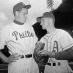 A three-time All-Star, he was American League MVP for the Philadelphia A’s in 1952 when he was 24-7 with an ERA of 2.48 and 27 complete games. He pitched in the All-Star Game that year, striking out the side in the fifth inning, including future Hall of Famers Jackie Robinson and Stan Musial.