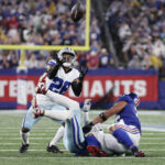 The game changed on the opening series. New York took the opening kickoff, rolled down the field and reached the Dallas 8 behind the running of Saquon Barkley and Jones. On a third-and-2, left tackle Andrew Thomas moved early and rookie center John-Michael Schmitz — a second-round pick — made a bad snap that Jones recovered back at the 27.