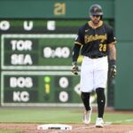 Bae pinch-ran for Joey Bart, who got aboard with a single, with Bae stealing second before advancing to third on a Ke’Bryan Hayes groundout.