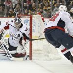 Following a faceoff win in the Penguins’ right circle by Capitals forward T.J. Oshie against Penguins forward Jeff Carter, Capitals defenseman John Carlson one-touched the puck from the right point to the top of the left circle, allowing Ovechkin to unleash a trident missile of a one-timer that slipped between DeSmith’s right arm and his torso on the near side. Carlson and former Erie Otters forward Dylan Strome collected assists.