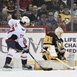 Attacking the net, Ovechkin over-exaggerated a wrist shot, then deked to the right. Goaltender Casey DeSmith slid to his belly on Ovechkin’s fake wrister but was able to extend his left skate — skate blade, really — just enough to deny Ovechkin’s true shot.