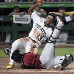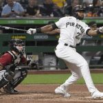 Hayes had to return to third base to tag up, then beat Pavin Smith’s throw to the plate, sliding past Diamondbacks catcher Daulton Varsho’s tag for a 1-0 Pirates lead.