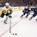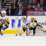 Bryan Rust left in the first period when his left leg went awkwardly into the boards on a hit by Columbus’ Adam McQuaid. Chad Ruhwedel left when he was hit into the glass by Nick Foligno behind the net in the second period.