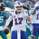 Focused on getting rid of the ball quickly and negating Jacksonville’s pass rush most of the game, Allen completed 28 of 35 passes for 273 yards and a touchdown. He ran for two scores, was sacked once and played turnover-free football. Khalil Shakir caught 12 passes for 82 yards for the Bills.