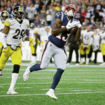 Ben Roethlisberger’s first pass was a 7-yarder to Smith-Schuster, who drew single coverage from the Patriots. He wasn’t targeted again until late in the second quarter, when he caught a 19-yarder on third-and-10.