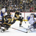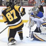 Sidney Crosby couldn’t get a handful of brilliant scoring chances past goalie Jordan Binnington, Crosby and linemates Jake Guentzel and Jared McCann were on the ice for the first three St. Louis goals and the Blues cruised to a 5-1 victory at PPG Paints Arena.
