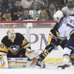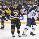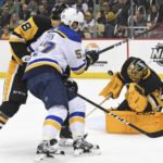 On the play that led to St. Louis’ first goal, Guentzel covered for a pinching Brian Dumoulin, but he got caught up with Colton Parayko while trying to defend a rush. Former Penguins center Oskar Sundqvist scored from the top of the right circle.