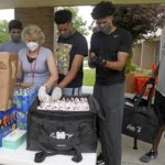 So Johnson filled 12 dozen bags with Chick-Fil-A chicken sandwiches and nuggets, bottled water and bags of chips. He spent nearly three hours handing them out with his mother, his father Gil and his brothers Donovan and Braylon alongside Hyde Elementary principal Joe Johnson, food service director Christie Leininger and school counselor Neil Tkatch.