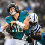 Three of Lawrence’s completions gained at least 30 yards. Brian Thomas Jr. had his best game in nearly two months, finishing with three receptions for 87 yards. Etienne ran 20 times for 74 yards, scoring on runs of 3 and 28 yards.